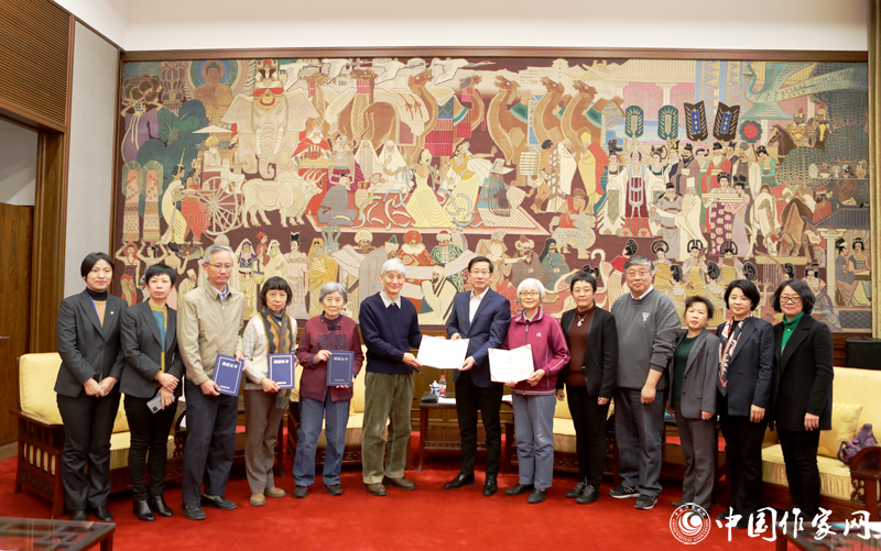 國家圖書館館長饒權(quán)代表國圖接受捐贈并向楊晦先生子女頒發(fā)捐贈證書