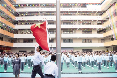 澳門濠江中學(xué)附屬英才學(xué)校舉行全校升國旗儀式。新華社發(fā)