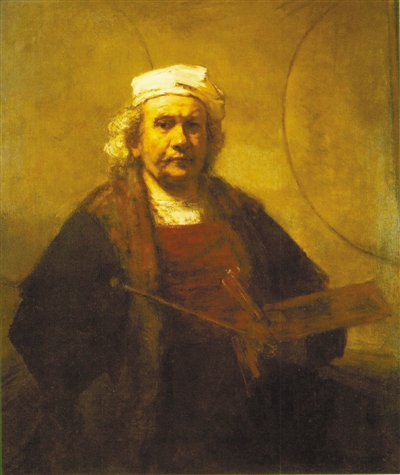 在人生的最后一年中,倫勃朗留下了幾幅自畫像。這些作品傳遞出相同的信息——關(guān)于“本真”。經(jīng)歷人生起落,倫勃朗在孤獨(dú)貧苦中重返藝術(shù)的本真?!白詈蟮淖援嬒瘛蓖嗜ナ⒛陼r(shí)的裝腔作勢(shì),忠實(shí)記錄了生命將盡的精疲力竭:疲憊的面容,佝僂的身軀,絲毫遮掩不住倫勃朗蒼勁悲壯的繪畫語(yǔ)言。他的筆觸堅(jiān)定有力,儼然出自1630年那個(gè)夢(mèng)想到阿姆斯特丹大干一場(chǎng)的24歲青年,卻又更多了一份凝重、一份無畏、一份天真。今天,如果為他的青春畫一幅肖像,我選擇1669年的那幅“最后的自畫像”——他用生命揭示了藝術(shù)長(zhǎng)青的真相,用悲劇離場(chǎng)指向壯美的凱旋。