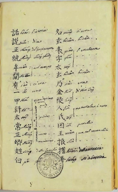 被伯希和稱為《中國短篇小說》的這件現(xiàn)藏于梵蒂岡宗座圖書館的文獻(xiàn),是萬濟(jì)國為幫助意大利籍的傳教士學(xué)習(xí)漢語而編寫的識(shí)字材料。他以《玉嬌梨》作為底本,對(duì)漢字單字和少量語詞注音并作解釋。此件絕非《玉嬌梨》的意大利語譯本,常老師將此件稱作“中國小說西譯之嚆矢”,我認(rèn)為這一論斷因缺乏事實(shí)支持而不能成立。