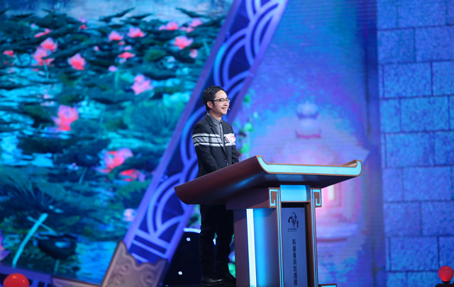 彭敏在《中國(guó)詩(shī)詞大會(huì)》第五季總決賽現(xiàn)場(chǎng)(受訪者供圖)