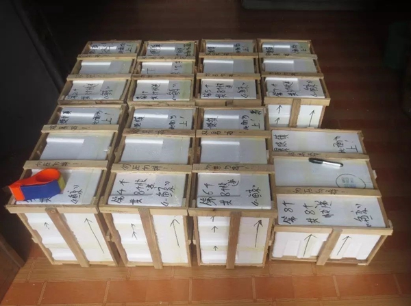 有些困難的是因?yàn)橐阅喟遄觥凹垺?。做泥板比較麻煩和辛苦,未燒之前的泥板很脆,很重,要小心翼翼地拿放和繪畫。還有困難的是陶瓷成型(釉下青花)的偶然性與一次成型。那時候即使有對作品的掌控力,燒窯還是容易出現(xiàn)一些問題,因?yàn)闅鉁氐募?xì)小差異,因?yàn)榛鹧娴奈恢藐P(guān)系,甚至因?yàn)楦蓾竦牟煌群芏嗟囊蛩?,作品燒出來都會不一樣。所以在之前做了很多小的試片。不過最后的成稿雖然因?yàn)檫@些因素有些影響,但是影響不大。最后,至于釉上新彩,只需要低溫烤花,所以可以反復(fù)烤制。不過最后的四塊新彩瓷板反復(fù)繪畫烤花也蠻多次的。