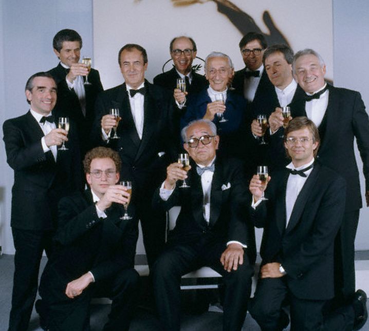 黑澤明(前排中)獲得奧斯卡終身成就獎(jiǎng)后,諸多知名導(dǎo)演向他表示祝賀。小編認(rèn)出合影中有馬丁·斯科塞斯、伯納德·貝托魯奇、史蒂文·索德伯格