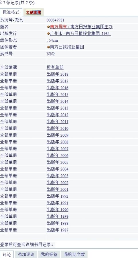 復(fù)旦大學(xué)圖書館聯(lián)機(jī)目錄中的《南方周末》