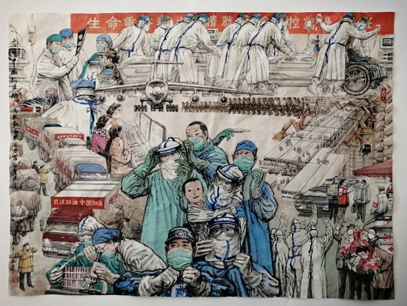 在這場(chǎng)人民戰(zhàn)疫中,全國(guó)美術(shù)界也表現(xiàn)出同仇敵愾、全體總動(dòng)員的熱情和勇氣,從中國(guó)美協(xié)到各大美術(shù)學(xué)院,從白發(fā)蒼蒼的老教授,到莘莘學(xué)子,僅中國(guó)美協(xié)就收到了4萬(wàn)多張各類(lèi)反應(yīng)人民抗疫的美術(shù)創(chuàng)作作品,美術(shù)界還為抗疫捐款、捐物、捐作品拍賣(mài)。中國(guó)美協(xié)分黨組書(shū)記、駐會(huì)副主席徐里曾任集美大學(xué)美術(shù)系主任,他說(shuō):“在這次全民戰(zhàn)疫中,全體美術(shù)家是好樣的,高校美術(shù)專(zhuān)業(yè)的青年學(xué)子是好樣的,‘90后’的青年美術(shù)家積極響應(yīng)總書(shū)記的講話(huà)精神,用手中的畫(huà)筆、用自己的真誠(chéng)有力地投身到支持抗疫的斗爭(zhēng)中表達(dá)對(duì)抗疫前線(xiàn)聲援、支持。我們看到這個(gè)新時(shí)代青年藝術(shù)家,用自己的畫(huà)筆來(lái)記錄這個(gè)時(shí)代畫(huà)卷,在時(shí)代的考驗(yàn)中茁壯成長(zhǎng)!總書(shū)記的回信對(duì)廣大學(xué)生青年的肯定和勉勵(lì),同樣也是對(duì)美術(shù)院校青年學(xué)生的激勵(lì)。”