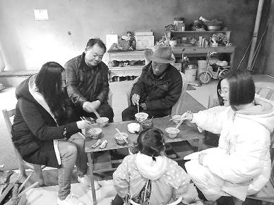 秦嶺(左二)和心理志愿者在藏族群眾家中采訪