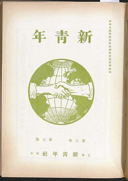 上海共產(chǎn)黨早期組織成立后,亟須一份機(jī)關(guān)刊物,據(jù)李達(dá)回憶:“宣傳方面,決定把《新青年》作為公開宣傳的機(jī)關(guān)刊物,從八卷一號(hào)開始?!薄缎虑嗄辍返母陌婊I備僅用一個(gè)月,它從1920年9月1日起呈現(xiàn)新貌,仍由陳獨(dú)秀主編(至年底,他赴任廣東省教育委員會(huì)委員長(zhǎng),雜志由陳望道負(fù)責(zé))。這期雜志封面正中有地球圖案,從東西兩半球伸出兩只強(qiáng)勁有力的手緊緊相握,“暗示全世界無產(chǎn)階級(jí)團(tuán)結(jié)起來”。此時(shí),《新青年》增辟“俄羅斯研究”專欄,連續(xù)發(fā)表30多篇譯稿和文章。陳望道晚年說“開辟‘俄羅斯研究’專欄,就是帶有樹旗幟的作用”。同年12月,《新青年》為了抨擊反馬克思主義思潮開展大討論,發(fā)表陳獨(dú)秀的《關(guān)于社會(huì)主義的討論》、李達(dá)的《討論社會(huì)主義并質(zhì)梁任公》和《馬克思派社會(huì)主義》等。
