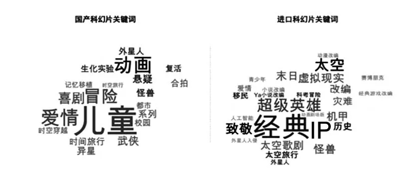圖1 國產(chǎn)科幻影片與進口科幻影片題材對比