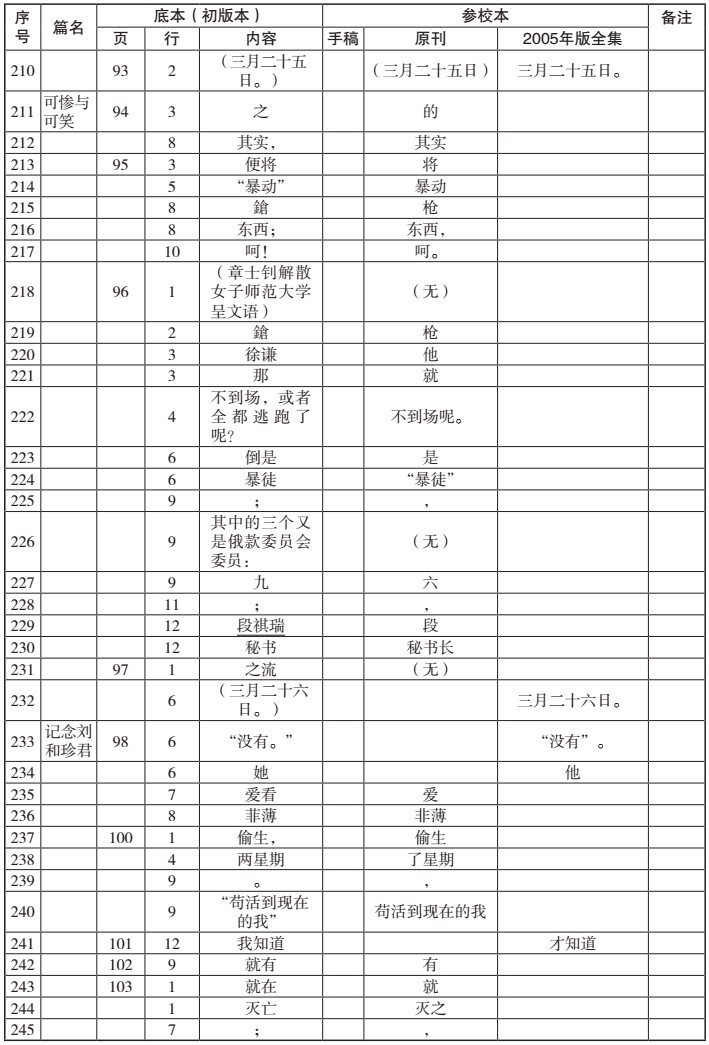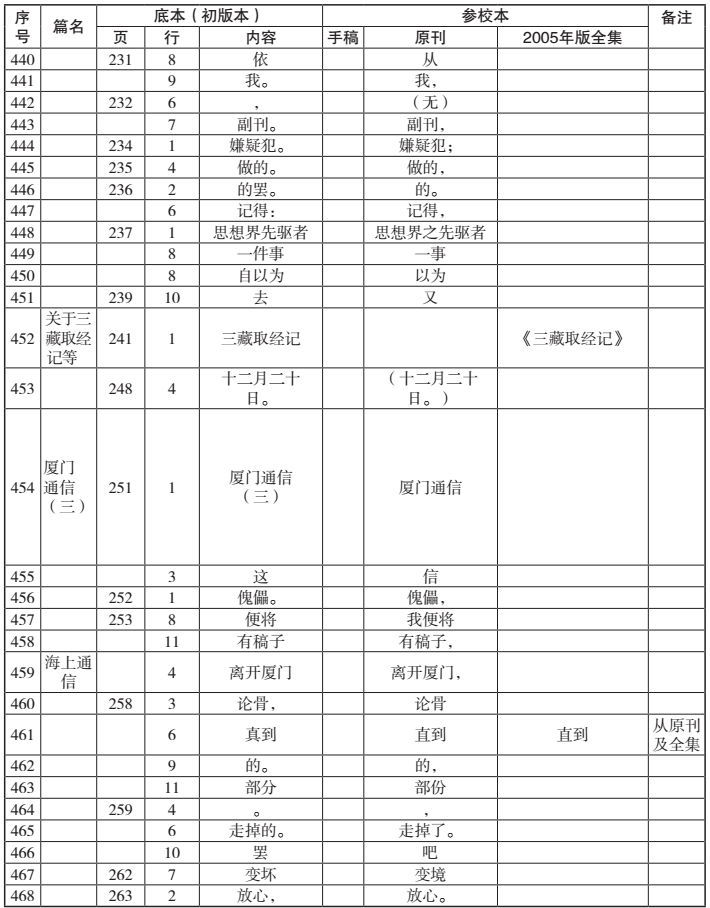 需要指出的是,以上幾例,雖然全集編者都改對了,但從??蔽墨I的角度講,這樣做是不妥的。至少,編者對于有改動的地方,需要加注說明,以使讀者能夠追溯。其實《魯迅全集》的日記卷就是這樣做的,對作者的手民之誤等加以校正時,在注釋中有說明。這種做法應(yīng)該推廣到其他各卷。