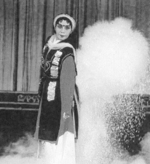 《大紅袍》那半仰著臉的姿態(tài),當(dāng)初得自紹興戲的《女吊》,那本是個‘恐怖美’的表現(xiàn),去其病態(tài)的因素,基本上保持原有的神情:悲苦、憤怒、堅強(qiáng)。藍(lán)衫、紅袍和高底靴是古裝戲中常見的。握劍的姿勢采自京戲的武生,加以變化,統(tǒng)一表現(xiàn)就是了。[40]