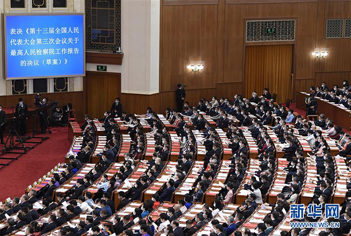 5月28日,第十三屆全國人民代表大會第三次會議在北京人民大會堂舉行閉幕會。 新華社記者 高潔 攝