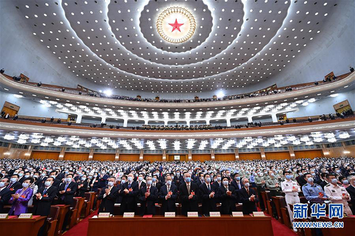 5月28日,第十三屆全國人民代表大會第三次會議在北京人民大會堂閉幕。黨和國家領導人習近平、李克強、汪洋、王滬寧、趙樂際、韓正、王岐山等在主席臺就座,栗戰(zhàn)書主持閉幕會并發(fā)表講話。 新華社記者 鞠鵬 攝
