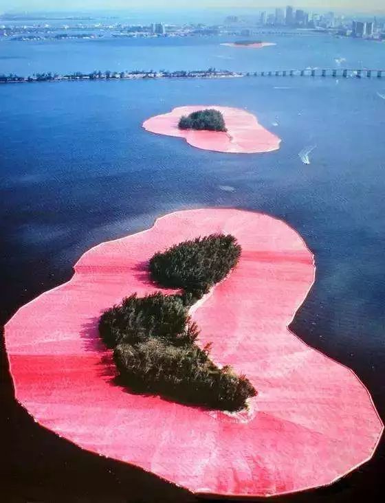 到1980年代,克里斯托和讓-克勞德的聲譽(yù)達(dá)到了一定程度,他們開展項(xiàng)目也越來越順利,這一時(shí)期他們大地藝術(shù)作品包括用明亮的粉紅色漂浮聚丙烯纖維圍繞邁阿密海上的11個(gè)島嶼。這件作品受到莫奈《睡蓮》系列的啟發(fā),在碧海藍(lán)天下,11座島嶼猶如11朵綻放的睡蓮。而后,他們包裹了巴黎最古老的橋——新橋(Le Pont neuf),當(dāng)時(shí)的巴黎市長(zhǎng)雅克·希拉克也對(duì)包裹新橋欣然同意。
