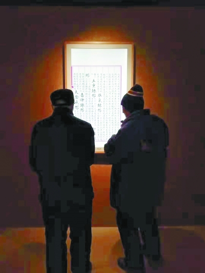 參觀者在國家圖書館觀看《永樂大典》文獻展。 張鵬攝