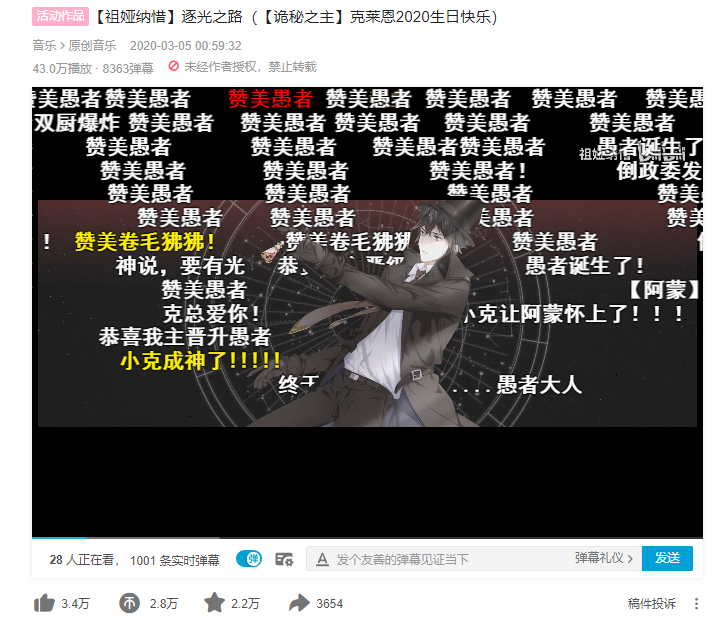 (粉絲為主角克萊恩慶生制作了同人歌曲,該作品在B站擁有43萬點(diǎn)擊)