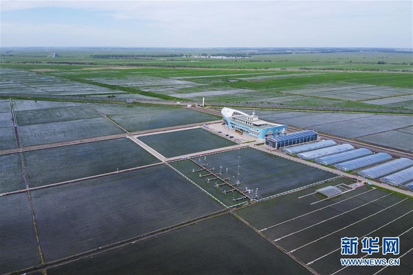 北大荒建三江國家農(nóng)業(yè)科技園區(qū)里的監(jiān)測設(shè)備(6月15日攝)。新華社發(fā)(張濤 攝)