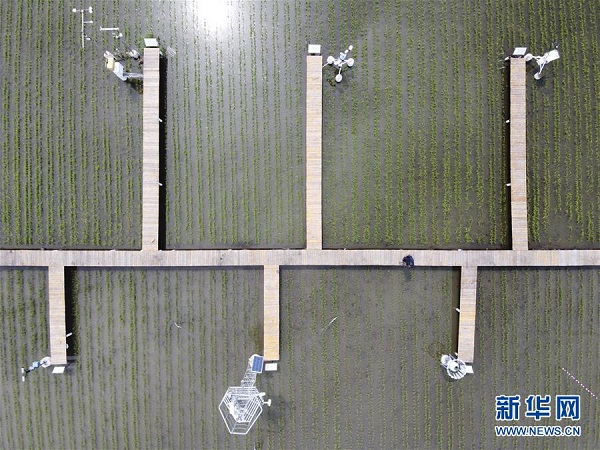 黑龍江省富錦市東北水田現(xiàn)代農(nóng)機(jī)專業(yè)合作社里的水稻需水量試驗區(qū)(6月12日攝)。新華社發(fā)(張濤 攝)