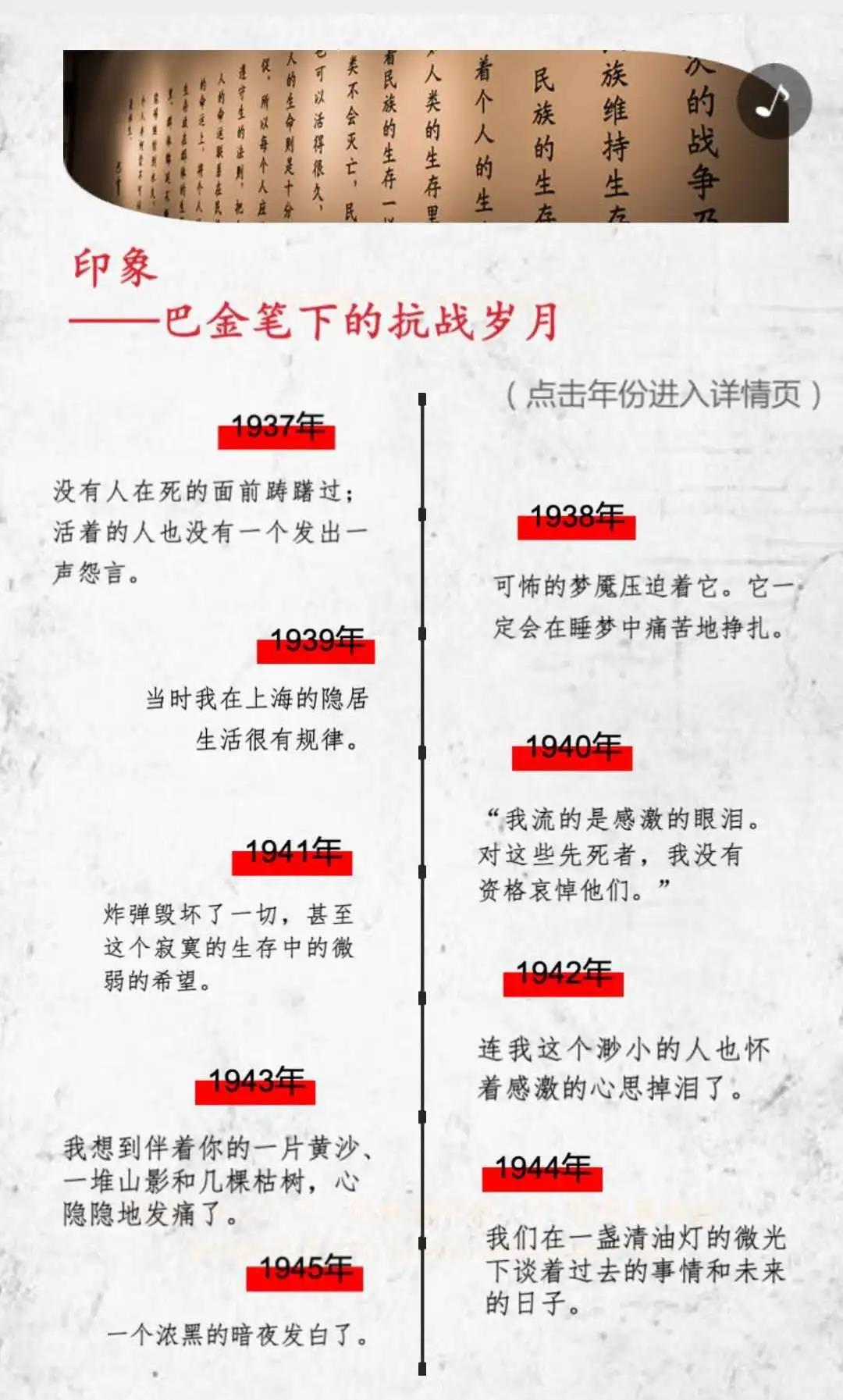 主要展示抗戰(zhàn)期間巴金的行動軌跡和經(jīng)歷而始,通過一個作家的角度,反應(yīng)一個個歷史斷面,反映了一個時代的風貌,塑造堅持信念、戮力抗戰(zhàn)的作家群像。