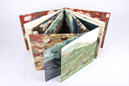 澎湃新聞:作為外行,我在《木蘭辭》繪本中看到了中國(guó)傳統(tǒng)繪畫(huà)的藝術(shù)風(fēng)格和手法,比如祥云、廣袖,不過(guò)似乎也看到了一些外來(lái)的元素和西方技法,比如頗似浮世繪的浪花,以及北歐插畫(huà)的感覺(jué),這種印象對(duì)嗎?