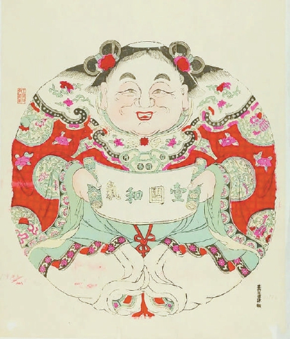 中國的木版年畫于宋代開始出現(xiàn),發(fā)展于明代,輝煌在清代。木版年畫的高光時刻,是在三大年畫生產(chǎn)地崛起之后,三地的作品,共同代表了清代木版年畫的最高水平。此時的木版年畫較于之前題材更為廣泛、畫稿更為優(yōu)美、刻版更為精致、色彩更為絢麗、品種更為多樣,這都使木版年畫越來越深受廣大民眾的喜愛,幾乎流行于全國。于是,在民間的潮流下、在商品貿易的促使下,生產(chǎn)力強、地區(qū)特色鮮明的中國三大年畫產(chǎn)地,也就是天津楊柳青、蘇州桃花塢、山東濰縣楊家埠的聲名遠揚。例如天津楊柳青的年畫創(chuàng)立了鮮明活潑、喜氣吉祥、富有感人題材的獨特風格,深受民眾喜愛。天津楊柳青年畫水平就非常高:其畫面富有故事性,構圖飽滿,線條細膩流暢,同時套色復雜且有層次。
