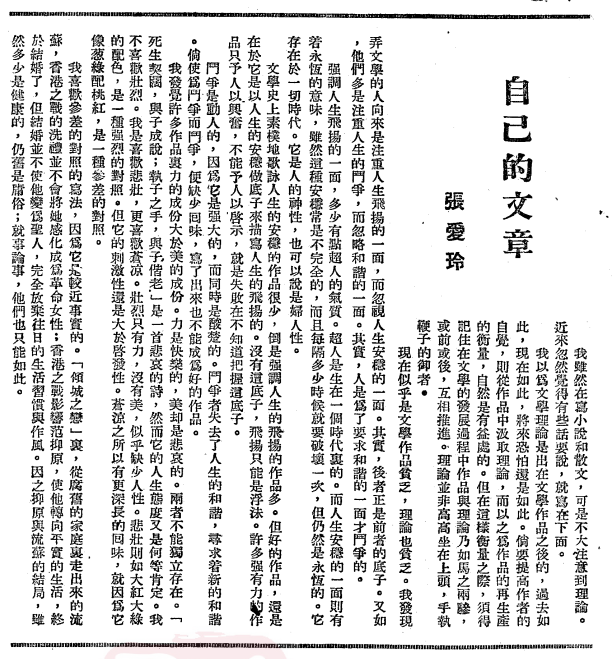 張愛玲《自己的文章》初刊