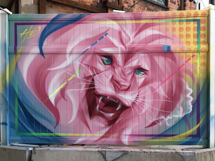 在展覽“Keep Shaking啟涂”中,CA$Ha組合此次噴繪的是組合名字的變形字體,并將其變成了少見的膠囊和扭蛋形式;而HE-何海鑫的創(chuàng)作則是粉色的獅子,吸引了不少目光;Funs的作品則像是藝術(shù)家本人的投射——一只正在噴繪的鴨子……