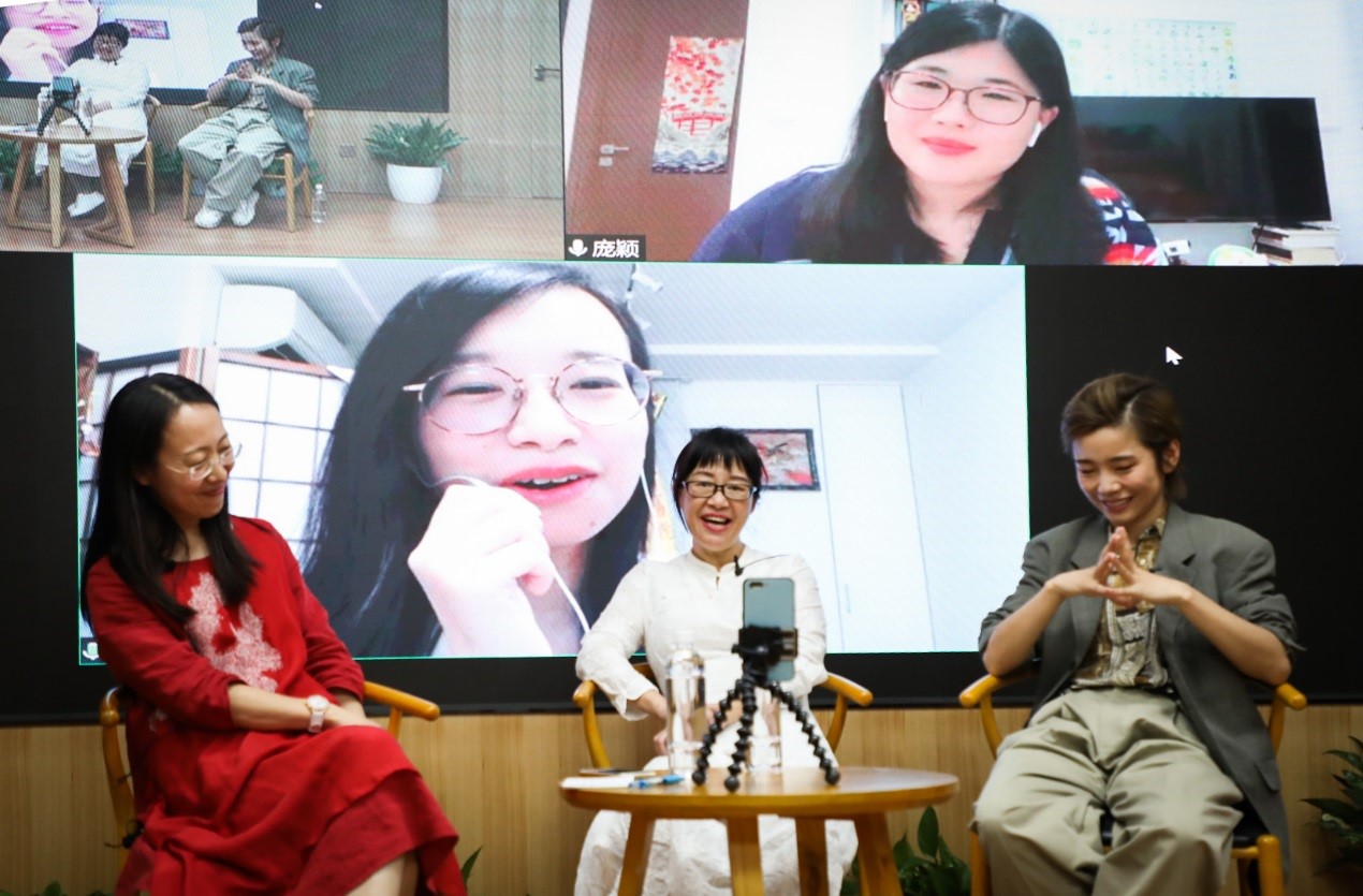 龐穎選讀了《我還是想》。她談到,“余老師那種非常直接的表達(dá),不管是在詩里還是詩外,都是非常難得的。她的詩讓我看到了以前沒有看到的世界?!泵摽谛阊輪T池子也參與了現(xiàn)場連線,和余秀華互動,開啟一場歡樂秀。