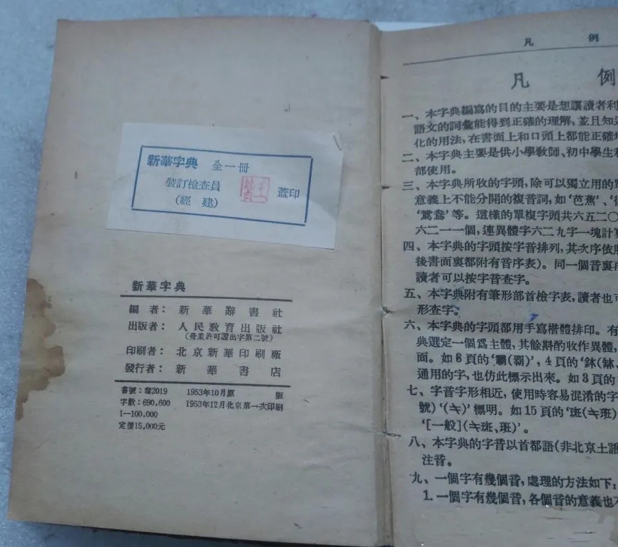 人教社1953年印裝的布脊紙面精裝《新華字典》