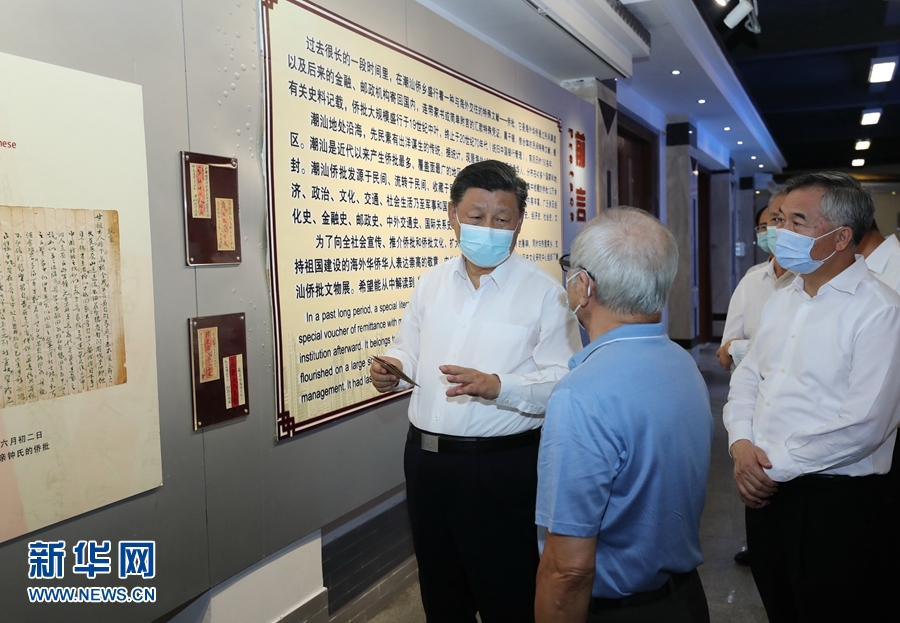 隨后,習近平參觀了具有潮汕僑鄉(xiāng)特色的僑批文物館。過去很長一段時間,海外華僑通過民間渠道將連帶家書或簡單附言的匯款憑證寄回國內,這些“僑批”成為研究近代華僑史的珍貴檔案。習近平聽取僑批歷史和潮汕華僑文化介紹。他強調,“僑批”記載了老一輩海外僑胞艱難的創(chuàng)業(yè)史和濃厚的家國情懷,也是中華民族講信譽、守承諾的重要體現(xiàn)。要保護好這些“僑批”文物,加強研究,教育引導人們不忘近代我國經歷的屈辱史和老一輩僑胞艱難的創(chuàng)業(yè)史,并推動全社會加強誠信建設。潮汕地區(qū)是我國著名僑鄉(xiāng)。汕頭經濟特區(qū)要根據(jù)新的實際做好“僑”的文章,加強海外華僑工作,引導和激勵他們在支持和參與祖國現(xiàn)代化建設、弘揚中華文化、促進祖國和平統(tǒng)一、密切中外交流合作等方面發(fā)揮更大作用。