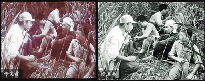 電影《地道戰(zhàn)》利用AI修復(fù)的效果對(duì)比(圖片來(lái)自網(wǎng)絡(luò))
