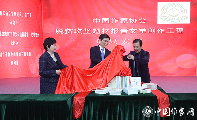 李敬澤、張紀臣、何向陽為“脫貧攻堅題材報告文學創(chuàng)作工程”圖書揭幕