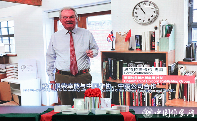 英國獨角獸出版集團社長思特拉斯卡倫通過視頻發(fā)言