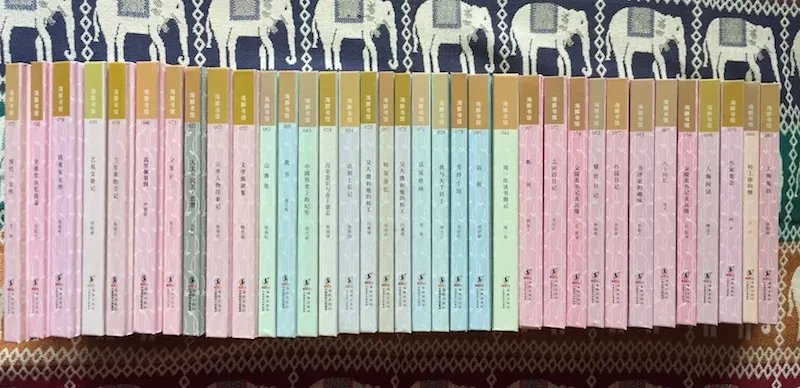 另一種與南大社瘦版小精裝一樣,對本土小開文化有創(chuàng)新和發(fā)展,我個人持正面評價的變體小精裝文庫,是“海豚書館”。這個文庫也是沈公退休后,與俞曉群、陸灝“談情說愛”、搞事情的成果。十年前,俞曉群從遼版集團(tuán)老總的位上榮退,轉(zhuǎn)戰(zhàn)京城,受聘于海豚社,遂成了這個項目的實操者。此文庫“致力于文化普及的長遠(yuǎn)出版工程”,按內(nèi)容,分成六種顏色,分別為藍(lán)系(海外文學(xué))、紅系(文學(xué)拾遺)、橙系(文學(xué)原創(chuàng))、綠系(學(xué)術(shù)鉤沉)、灰系(學(xué)術(shù)原創(chuàng))和紫系(翻譯小品)。一般來說,學(xué)術(shù)出版不碰文學(xué)原創(chuàng),是通例,可“豚館”卻連原創(chuàng)帶翻譯,與學(xué)術(shù)“一勺燴”,給人的感覺是野心好大。不過,俞總出手,必是大手筆,早已是業(yè)界共識,我當(dāng)然也不懷疑。反正他們一邊出,我一邊收就是。統(tǒng)共除了多少種,包括何時被打上了休止符,我都不大清楚。自己手里各種色系,計有三十五種,且頗有幾種難得的資料。