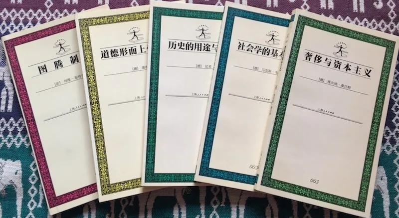 再往前回溯,2000年至2002年,上海人民出版社推出了一套“袖珍經(jīng)典”(Pocket Classics)叢書,囊括了曾對近現(xiàn)代文明產(chǎn)生過深刻影響的法德兩國知識巨人的九種小書。普通平裝、編號,統(tǒng)一的Logo和裝幀形式,像商務(wù)版“漢譯名著”或巖波新書那樣,不同的學(xué)術(shù)領(lǐng)域(哲學(xué)、社會學(xué)、人類學(xué)等),以不同顏色的來區(qū)分,通俗而又不失學(xué)術(shù)味道。我收了其中五種:康德的《道德形而上學(xué)原理》、尼采《歷史的用途與濫用》、列維-斯特勞斯《圖騰制度》、馬克斯·韋伯《社會學(xué)的基本原理》和維爾納·桑巴特的《奢侈與資本主義》。