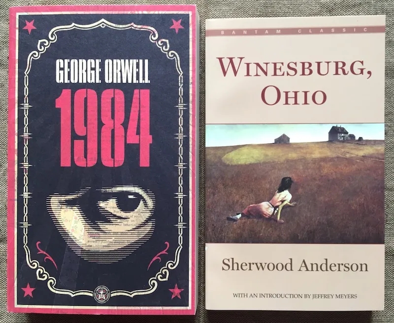 作者藏兩種英文文庫:英國企鵝叢書《1984》和美國矮腳雞叢書《小鎮(zhèn)畸人》