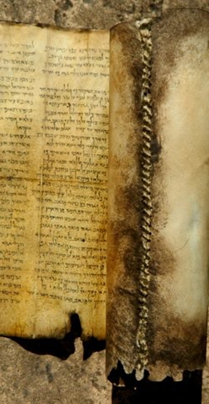 用動(dòng)物筋腱縫合起來(lái)的皮紙卷軸書(shū)寫(xiě)的《死海古卷》