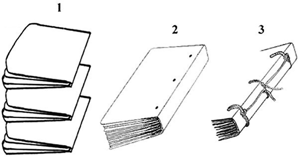 科普特裝訂的筆記本,單迭(左)與多迭(右)