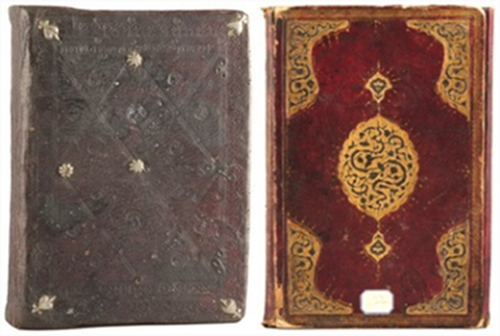 約1396年的希臘手稿(左),書(shū)脊較圓;約16世紀(jì)的伊斯蘭手稿(右),較為平整
