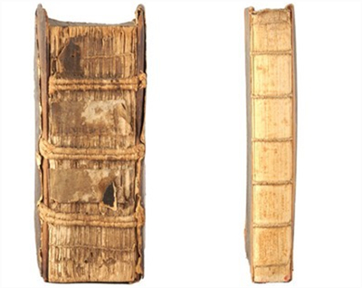 約16世紀(jì)的法國(guó)雙繩線裝訂圖書(shū)(左),約18世紀(jì)的德國(guó)單繩線裝訂圖書(shū)(右)