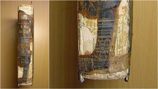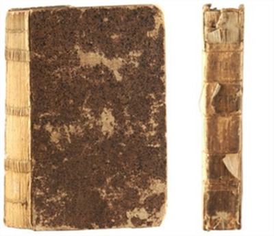 18世紀(jì)用羊皮帶連接起來(lái)的德國(guó)線裝書(shū)(左),1787年隱藏繩線的法國(guó)線裝書(shū)(右)