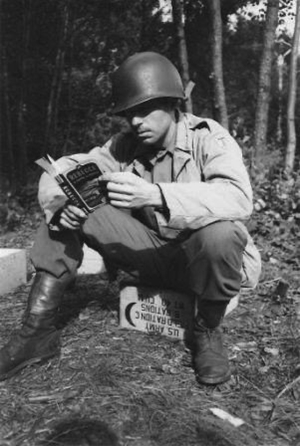 無(wú)線膠黏裝訂的平裝書(shū)誕生后不久就爆發(fā)了第二次世界大戰(zhàn)。在二戰(zhàn)期間,這種新穎又便宜的平裝書(shū)甚至成為了軍用物資,包括企鵝在內(nèi)的許多著名出版社組成了戰(zhàn)時(shí)圖書(shū)委員會(huì),盡量壓低版權(quán)費(fèi)和印刷費(fèi),為政府提供專(zhuān)門(mén)供給軍隊(duì)的“軍用版”圖書(shū)(Armed Services Edition)。這些平裝書(shū)的尺寸剛好可以裝進(jìn)軍裝的口袋,成為了和干糧、彈藥一樣常常被士兵們隨身攜帶的物品。參與過(guò)二戰(zhàn)的著名文化研究學(xué)者理查德·霍加特(Richard Hoggart)就曾這樣說(shuō):“如果褲子后面的口袋鼓了起來(lái),大概率說(shuō)明這個(gè)人是個(gè)書(shū)迷?!?nbsp;