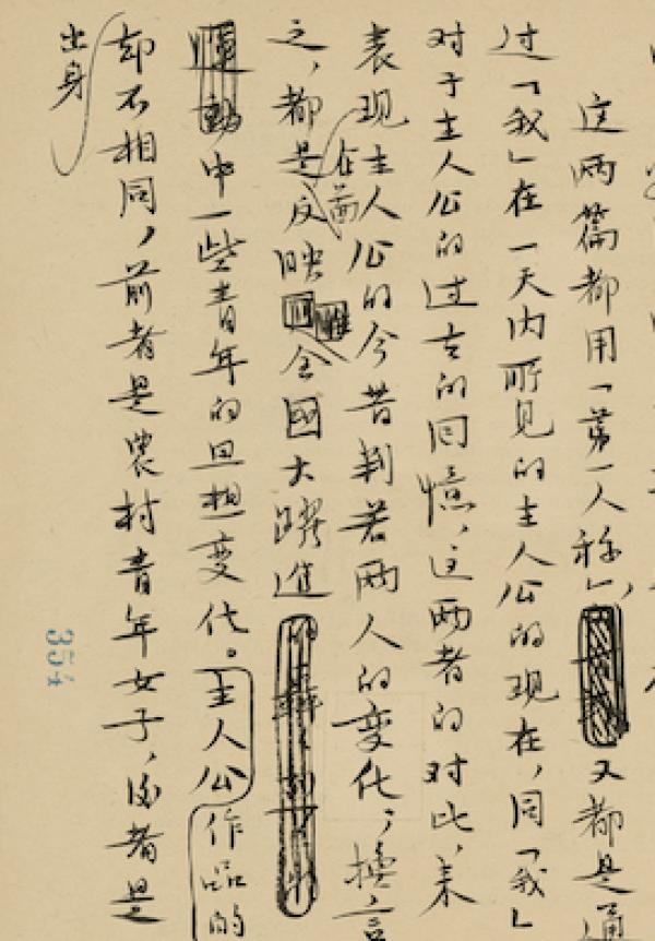 這一手稿是1958年寫的,我是搞畫史的,對文學史不是太了解,但里面有一個共通的現(xiàn)象,就是文藝為大眾服務越來越走向高潮,從這一手稿里面可以看出來。實際上當時有一個大背景,提倡寫短篇小說,別人容易看得明白,當時出了一批新作者,主要的目的是貼近生活。實際上從繪畫史的話,這些要求在畫史里面也存在的,這是可以相互參看的。