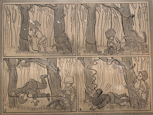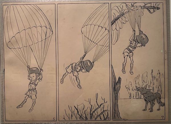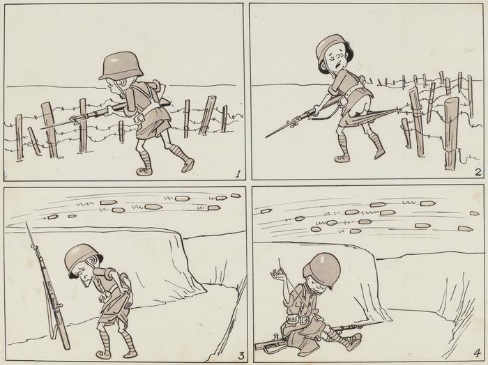 《三毛從軍記》很多源自我父親親眼所見,所以這套作品1946年在《申報》發(fā)表后,很多人都喜歡看。我父親沒有參過軍,但是曾多次到最前線慰問當(dāng)時的抗日部隊,知道他們?nèi)绾慰谷铡⑷绾未蛘痰?。《三毛從軍記》也是中國第一部軍旅漫畫,甚至后來好多人把他這部作品和捷克作家哈謝克創(chuàng)作的《好兵帥克》相提并論。而且,《三毛從軍記》是中國第一部沒有文字的長篇漫畫。