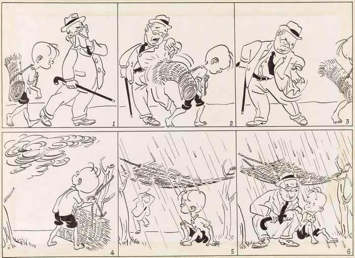 《三毛流浪記》是我父親1947年開始創(chuàng)作的一部作品。最早什么時候畫了三毛,他自己也并不清楚,后來在他去世以后,我們在上海圖書館的幫助下,找到了最早的三毛——1935年7月28日,在《圖畫晨報》上面刊登的這么一個兒童形象的連環(huán)漫畫。其實在三毛之前,我父親也是畫過一些小孩子的漫畫,但后來因為“三毛”的形象深入人心,所以就延續(xù)了。
