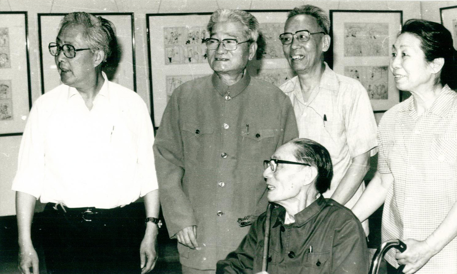 坐者:夏衍;立者(左起):華君武、張樂平、廖冰兄、郁風(fēng),攝于1983.6
