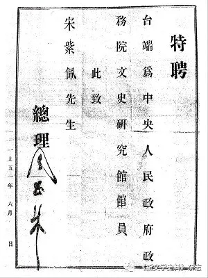 1925年,魯迅因支持女師大學(xué)生反帝愛國運(yùn)動而遭到教育總長章士釗的非法免職。8月14日,魯迅的免職令發(fā)布以后,當(dāng)天去拜訪魯迅的友人多達(dá)23人,宋紫佩便在其中。不僅如此,宋紫佩又分別于16日、18日、20日、26日、28日五次前去拜訪。10月13日《魯迅日記》記載:“得平政院通知,即送紫佩并附信?!逼秸核蛠淼恼钦率酷摯疝q書副本,要求魯迅在5日內(nèi)答復(fù)。像這樣的案子,魯迅自然要托付給可信賴之人,顯然宋紫佩便是。宋紫佩擅長文案,京師圖書館分館又可查閱大量資料,且他幼時的老師壽洙鄰當(dāng)時正在北洋政府的平政院擔(dān)任法官。因此,魯迅請宋紫佩代寫互辯書提綱。三天后,宋紫佩寫出了控訴章士釗的互辯提綱的底稿交魯迅。自1925年8月14日免職令發(fā)布至1926年1月18日魯迅重回教育部,宋紫佩是魯迅所有友人中與之聯(lián)系最多的一位,在此期間,宋紫佩拜訪魯迅的次數(shù)多達(dá)15次(其中兩次訪而未遇),另有一封信致魯迅。