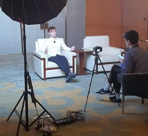 JKS Manga(左)在2020首屆上海國際網(wǎng)絡文學周現(xiàn)場接受媒體采訪