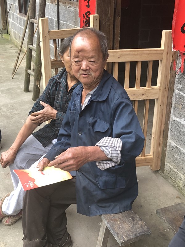 這老兩口,男主人七十六歲,女主人六十八歲。大概是上世紀(jì)八十年代,男的放牛,遇到大雨,從山上滑倒摔落陡崖,被一棵樹攔腰救下,額頭重重磕在樹干上,整個腦門凹進去一塊大缺,像個大寫的G。他就是刊發(fā)于《十月》的沈念中篇小說《空山》中,易地搬遷釘子戶“彭老招”的原型。