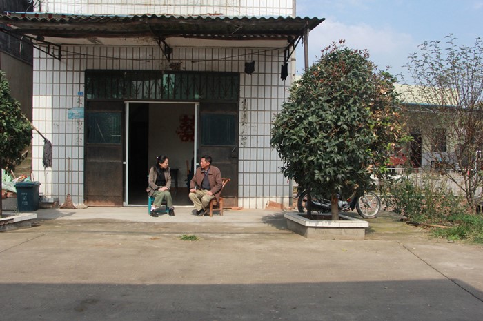朱朝敏在百里洲路飛霄村采訪貧困戶