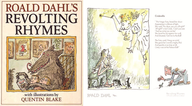 在達爾的作品中,《反叛的童謠》恐怕是最為特殊的一例,因為它是一部童話詩集。詩集包括6首改編自經(jīng)典《格林童話》故事的兒童詩,如親手射殺狼的小紅帽、偷走魔鏡并預(yù)測賭馬結(jié)果的白雪公主……這些詩歌改編自膾炙人口的《格林童話》,卻在達爾的筆下呈現(xiàn)出完全不同的樣貌。